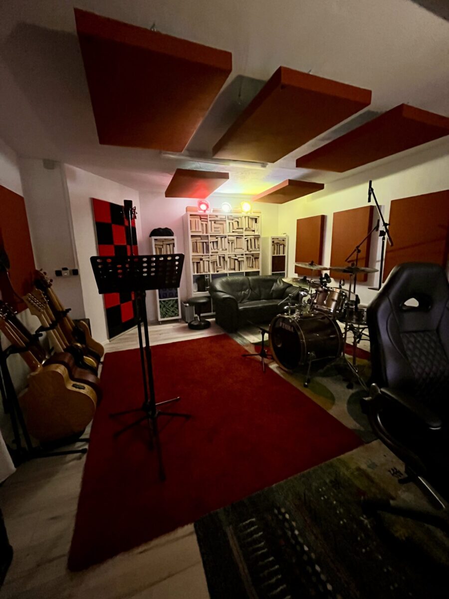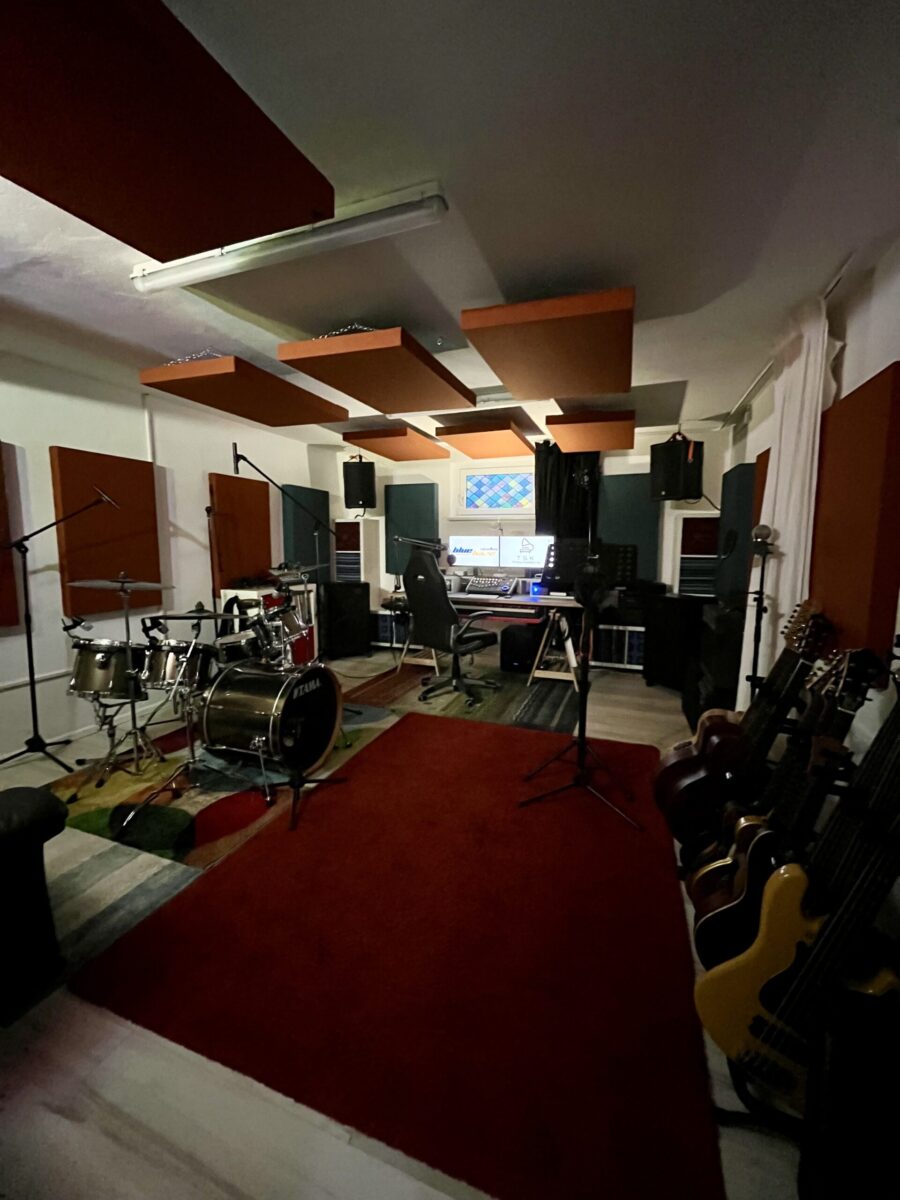Aus einem schon sehr gut eingerichteten Proberaum entstand im Jahr 2025 auf knapp 30 m² durch raumakustische Maßnahmen und Upgrades im technischen Bereich ein sehr hochwertiges One-Room-Studio mit professioneller Ausstattung.